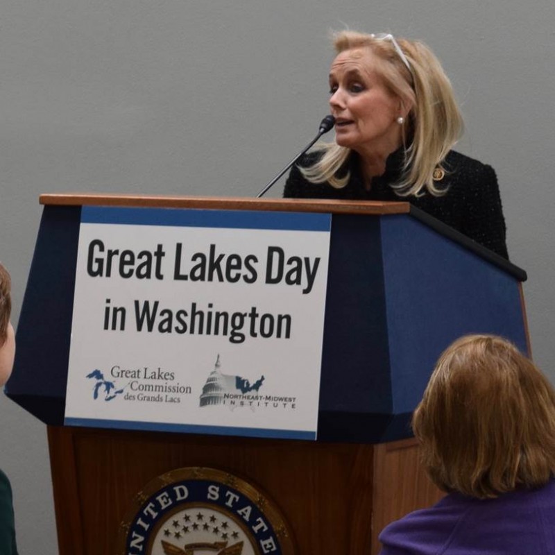 Offering remarks were key Great Lakes Congressional representatives, including Senators Amy Klobuchar (D-MN), Rob Portman (R-OH), and Debbie Stabenow (D-MI), and Representatives Mike Quigley (D-IL), David Joyce (R-OH), Debbie Dingell (D-MI), Dan Benishek (R-MI), Mike Kelly (R-PA), and Marcy Kaptur (D-OH). A wide range of Great Lakes topics were addressed, including the Great Lakes Restoration Initiative, clean and safe drinking water, invasive species, water quality issues including harmful algal blooms, and other economic issues that directly impact the Great Lakes. Representative Joyce Beatty (D-OH) was in attendance at the Breakfast, and staff from Sen. Mark Kirk’s (R-IL) office provided a brief update on the issues that the Senator is working on regarding the Great Lakes. Below are photos from the event.