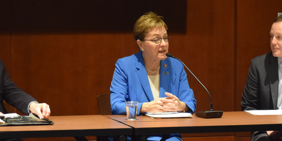 Representative Marcy Kaptur (OH-09), Co-Chair of the House Great Lakes Task Force, spoke to attendees about important issues currently facing the Great Lakes. She underscored the importance of managing the Asian carp problem, protecting the Lakes from harmful algal blooms, and upgrading infrastructure throughout the Great Lakes. Rep. Kaptur also discussed her new role as the Chair of the House Appropriations Subcommittee on Energy and Water. She emphasized that this new Congress presents a great opportunity for the Great Lakes, as five out of the twelve Appropriations’ subcommittees will be chaired by Members from the region.